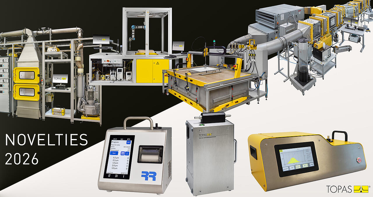 Since more than 30 years, technology-oriented particle, analysis and sensor systems have been developed, designed and manufactured under the name Topas. They can be used to generate, condition and analyse test and reference aerosols. In addition, more than 60 series devices and 20 test systems of our medium-sized Saxon company have been widely used and proven for the classification and testing of filters and filter media in worldwide industry and basic research for decades.